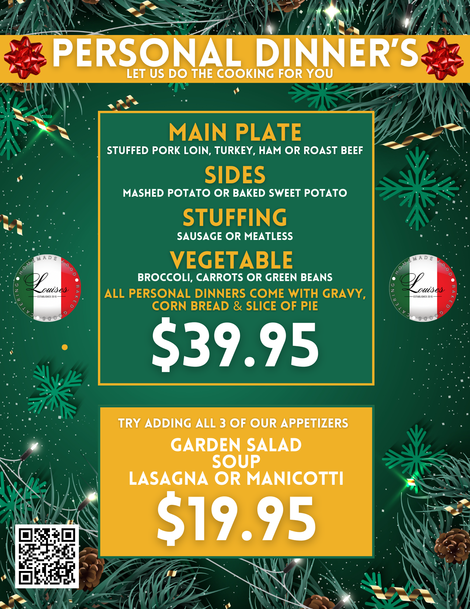 Italian classic's like cannoli & sfogliatella are just a couple of the favorites from our dessert section at Louise's. Come and try something sweet from the bakery cases today.