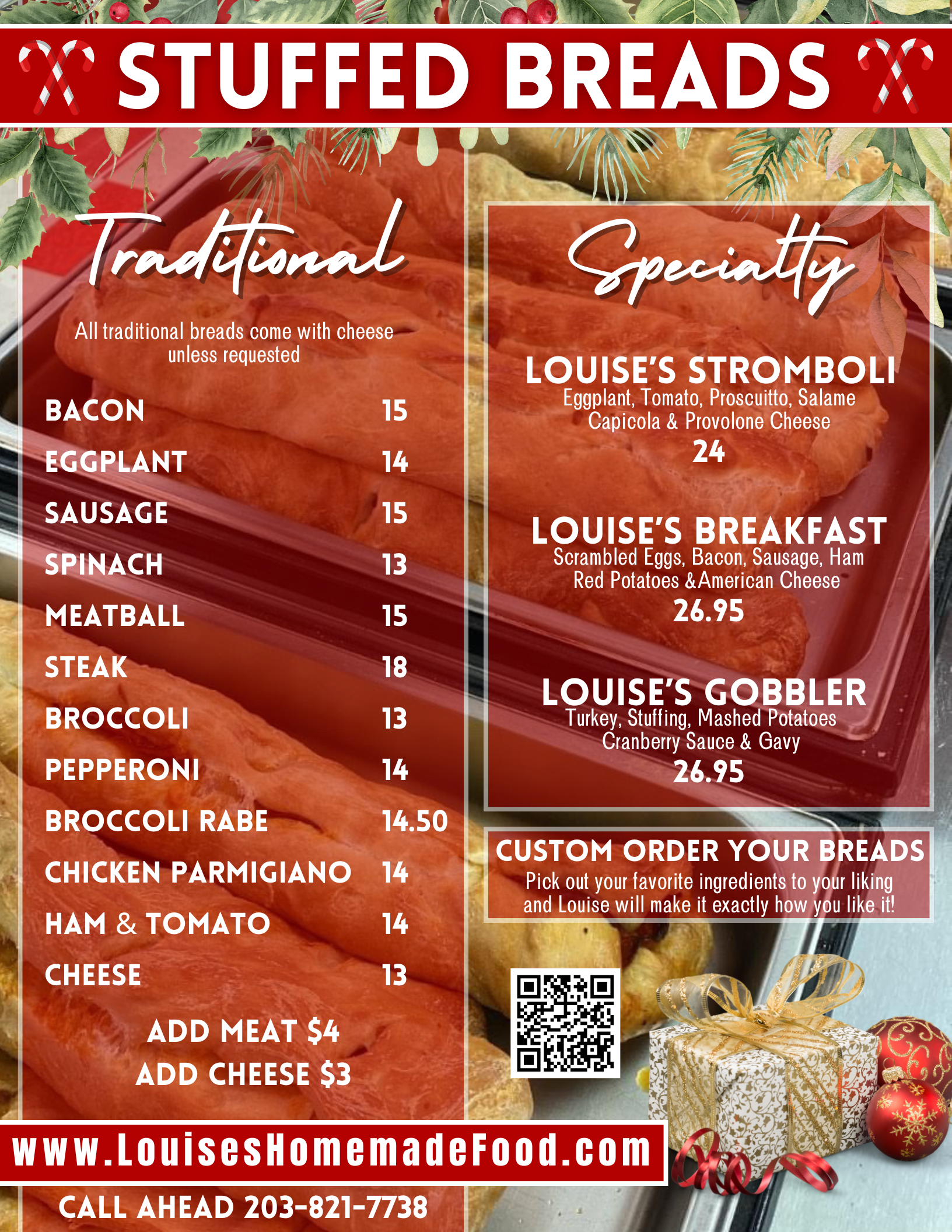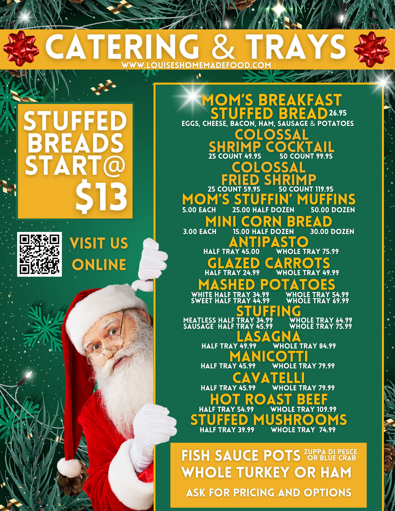 Having a party and looking for the show stopping sandwich? Let Louise's give you the chance to build the dream sub that will have you and your guests stuffed! 3' subs 4' subs & 6' subs available to order.